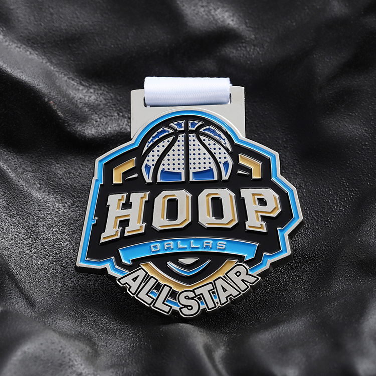 Home » Products » Medals » Customizable HOOP Dallas All - Star Colorful Enamel Basketball Medal with White Ribbon